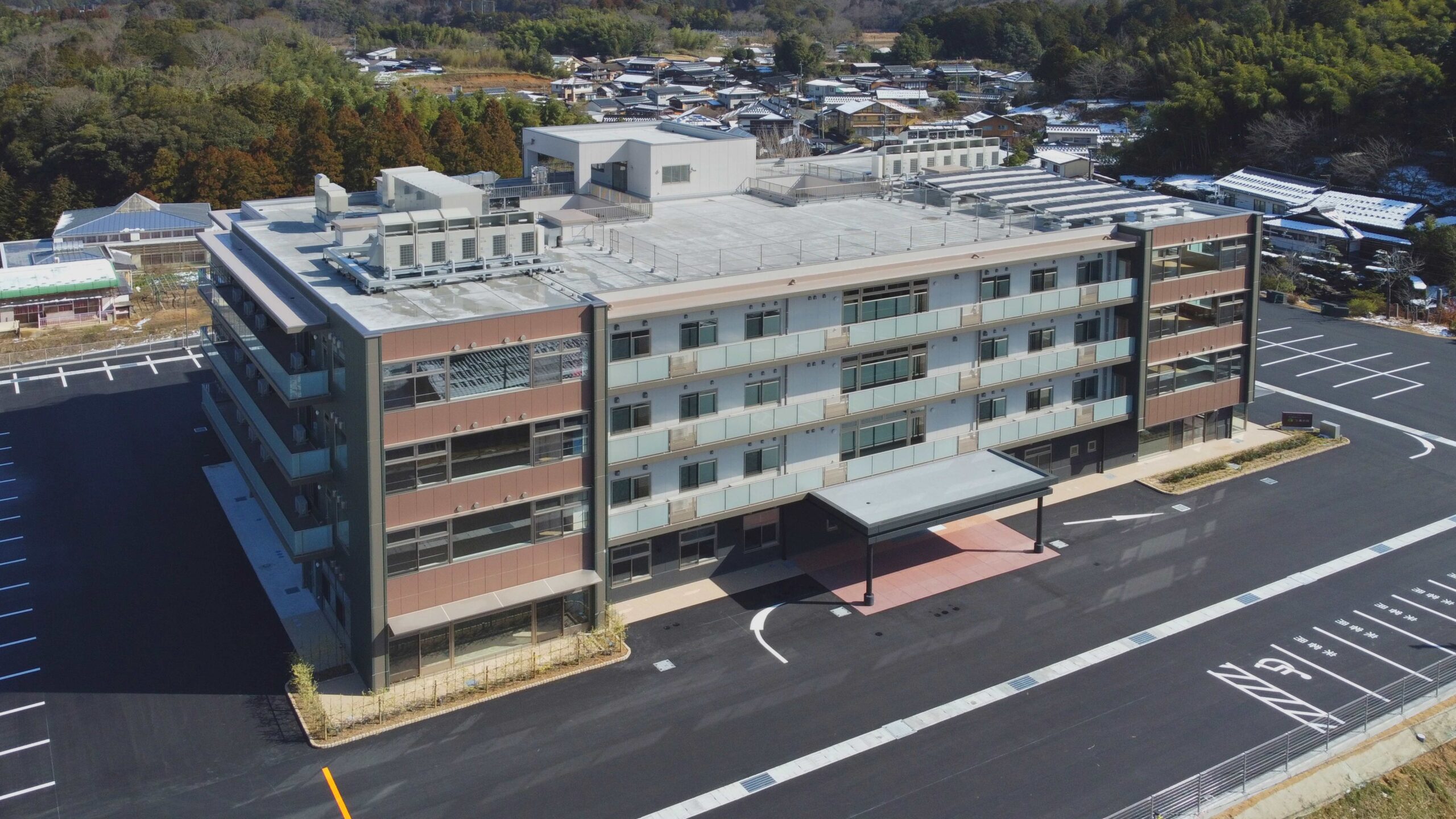 令和6年3月に、施設の老朽化に伴い桑飼小学校跡地に移転新築しました。京都府では初の1ユニット15室の施設で、最新の介護見守りシステムやインカム等ICT、最新の入浴機器やリフト等を導入活用することで業務が効率化され、これまで以上に入居者ひとり一人に寄り添ったケアが提供できるようになりました。